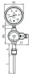 注: 1、溫度表的插入深度L可供選擇的系列:100,150,200,300,400,500,750,1000,1250,1500,2000等,也可根據(jù)用戶需要定制。 2、保護管采用不銹鋼1Cr18Ni9Ti制造。 |