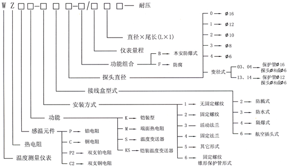 WZP系列熱電阻溫度計(jì)編號(hào)規(guī)格