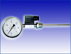 型溫度計上安裝一接點裝置,通過調節(jié)機構,可方便地改變設定指針的位置。當被測溫度上升(或下降)到設定點時,溫度計會給出一個開或關的信號,用于控制、調節(jié)或報警被測溫度。